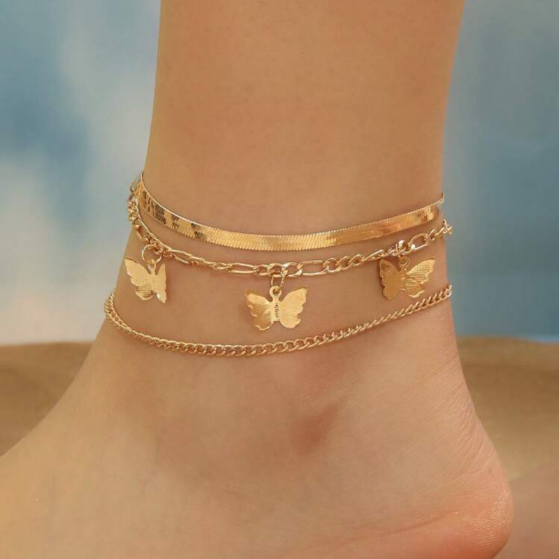 国境を越えたヨーロッパとアメリカの売れ筋ジュエリーファッションバタフライペンダント多層チェーン新しいビーチアンクレットシンプルなメタルフットアクセサリー