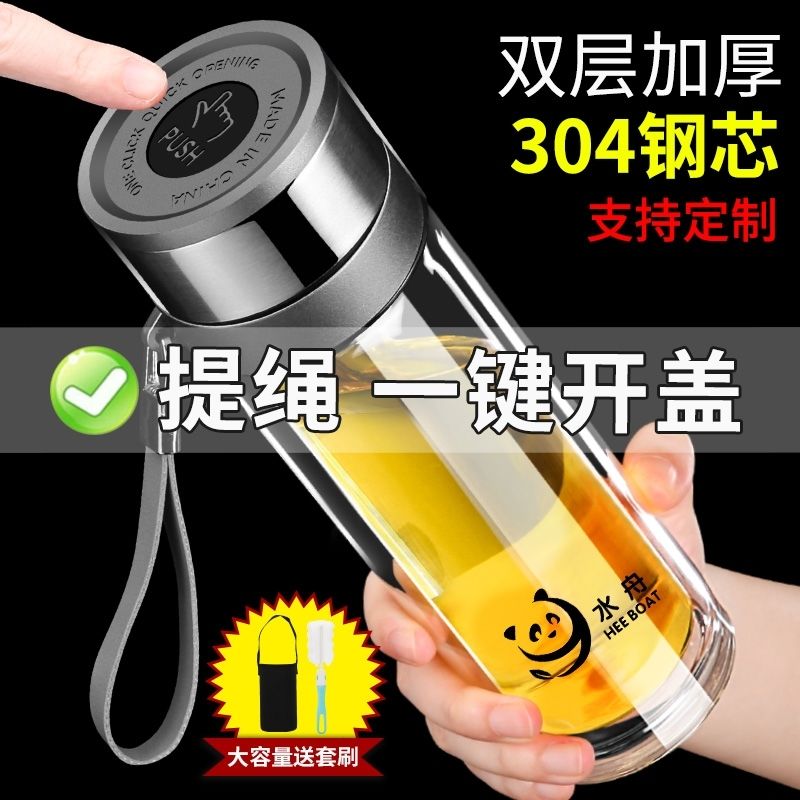 プッシュ式速開蓋茶水分離二重断熱グラス茶カップ男女携帯車載カップカスタマイズ