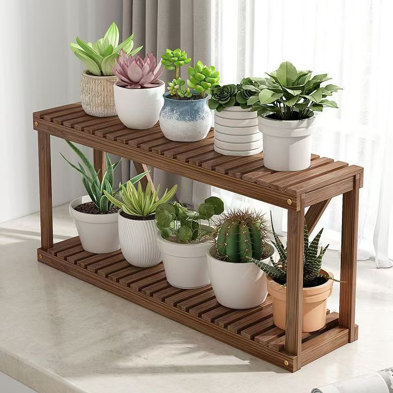 窓辺の花架オフィスのデスクトップの実木の多肉の窓の小さい花の棚の室内の客間の陽