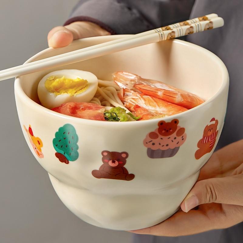 Ins可爱い麺碗家庭用2025新型麺碗飯碗陶磁器ラーメン碗スープ碗の美しい麺碗