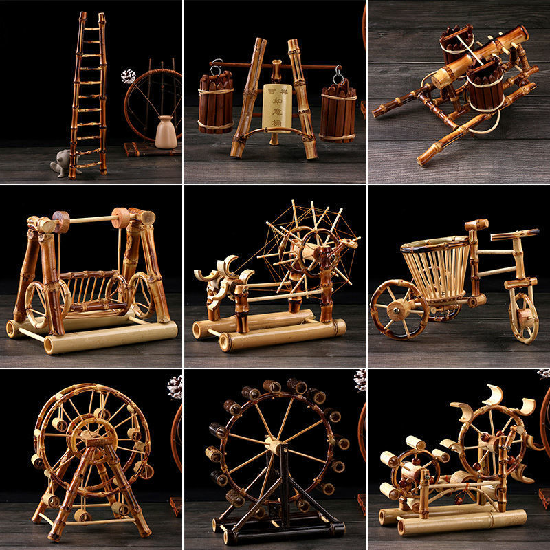 竹製観覧車竹風車水車模型家庭飾り物道具竹工芸品置物