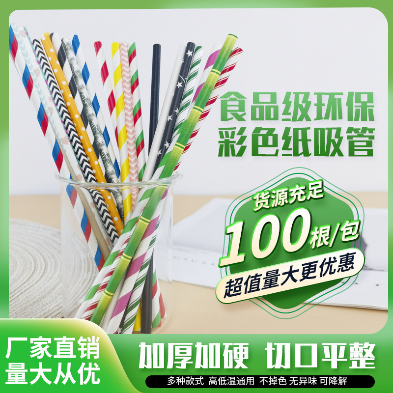 使い捨てカラー分解性紙環境保護ジュース芸術ストローストライプバー食品