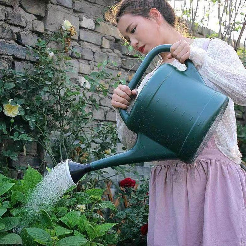 大容量の水筒の長い口の家庭は花の壺の園芸に水をやります。