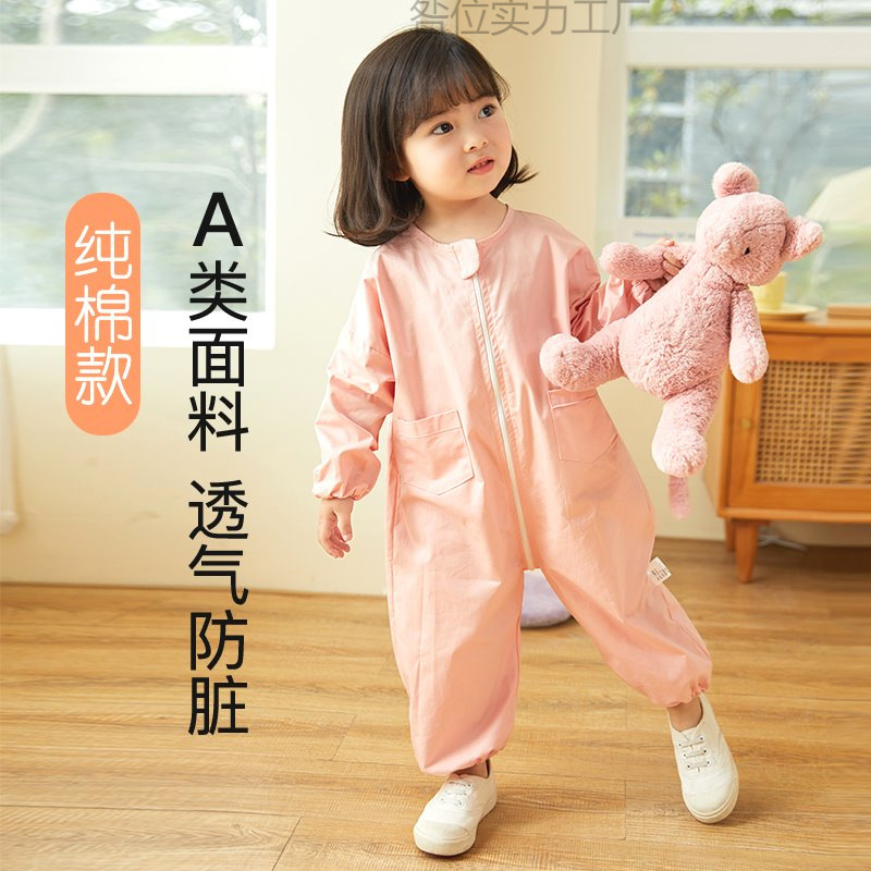 赤ちゃんは男の子の赤ちゃんの純綿を這って服を着ます。子供は汚れを防ぎます。