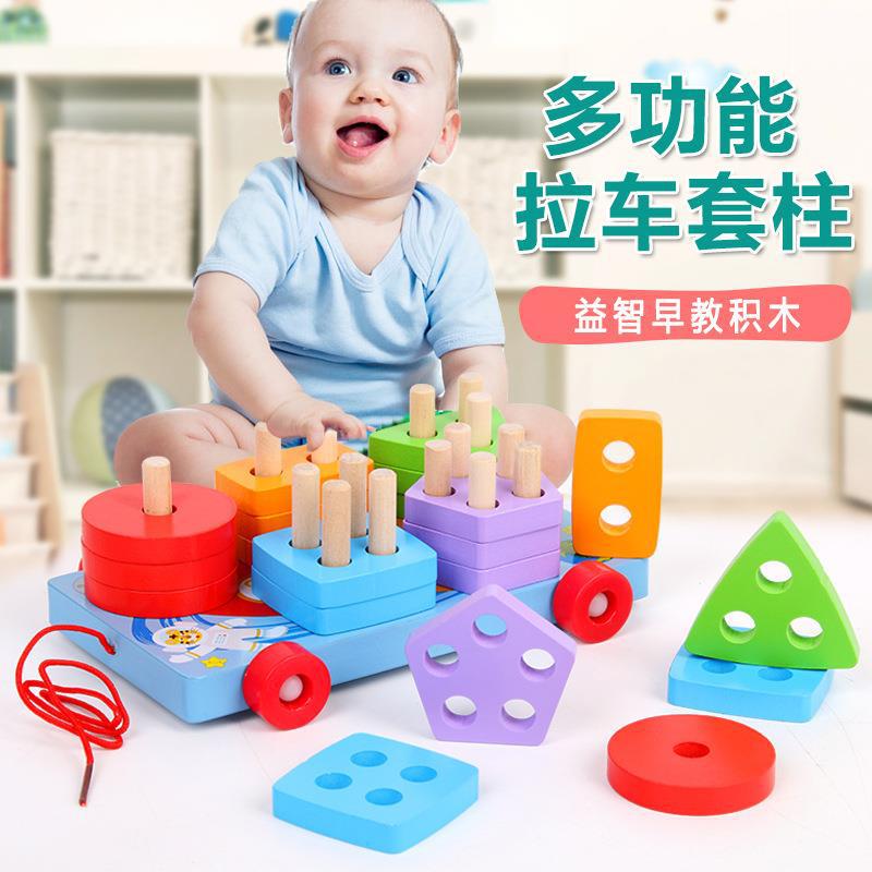 木製トレーラー幾何学セット柱玩具カラー幾何学形状認知ペアリング脱着セット柱トレーラー玩具