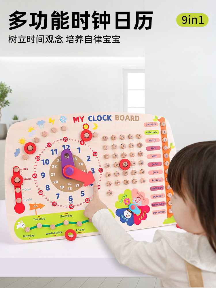 木製子供目覚まし時計認知玩具幼児温度天気時計月季節曜日など多機能ボード