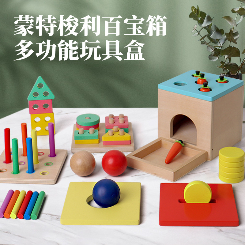 木製子供パズルゲーム五合一ゲームボックス赤ちゃん貯金箱算数棒形状カバー柱抜き大根