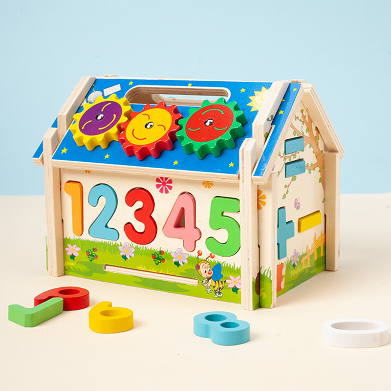 木製の子供の多機能は知恵の部屋の幾何学のデジタルの形を分解して知能の箱の赤ちゃんの益智のおもちゃをペアにします。