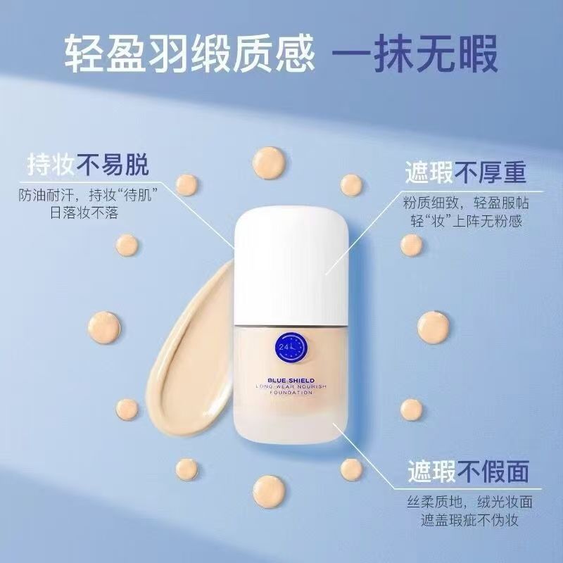 ビンジ ブルー シールド リキッド ファンデーションは、青銅ペプチドを特別に使用し、跡が残らないコンシーラー、偽の美白、メイクを落としにくいリキッド ファンデーションです。