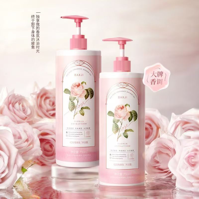 BAXJI レッドローズフレグランスシャワージェル 大容量 750ml 保湿と若返り、さわやかできれいな肌のシャワージェル