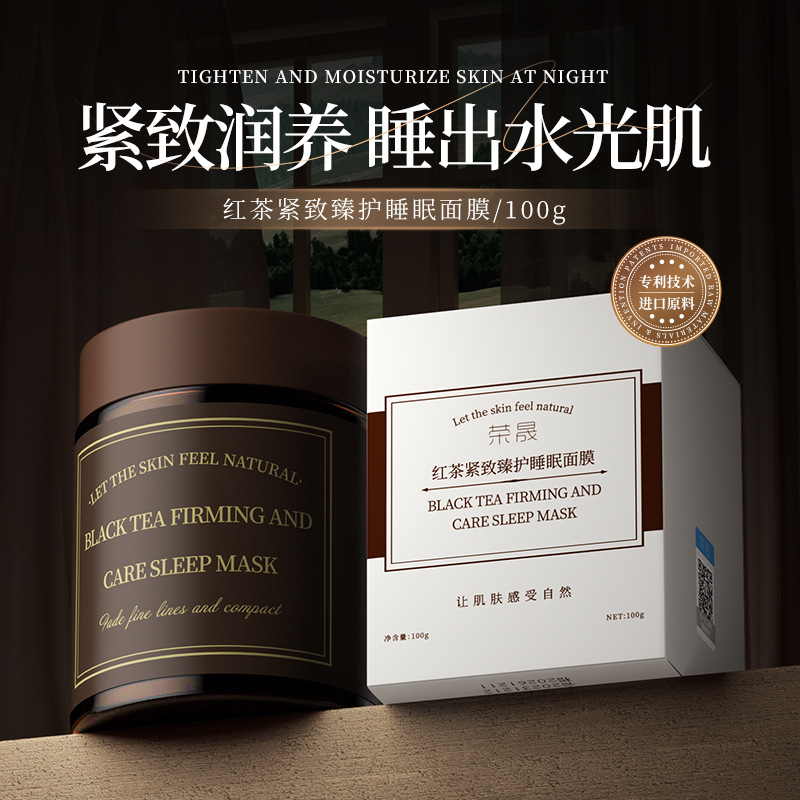 Rongsheng 紅茶引き締めスリーピングマスク、保湿と保湿の夜更かしマスク、保湿、柔らかさ、リフティング、洗い不要