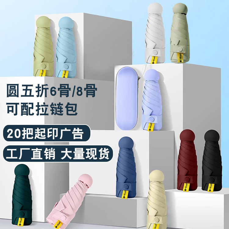 日焼け止め五折八骨傘ポケットカプセル傘黒ゴム五折六骨折り畳み日除け傘晴雨広告傘