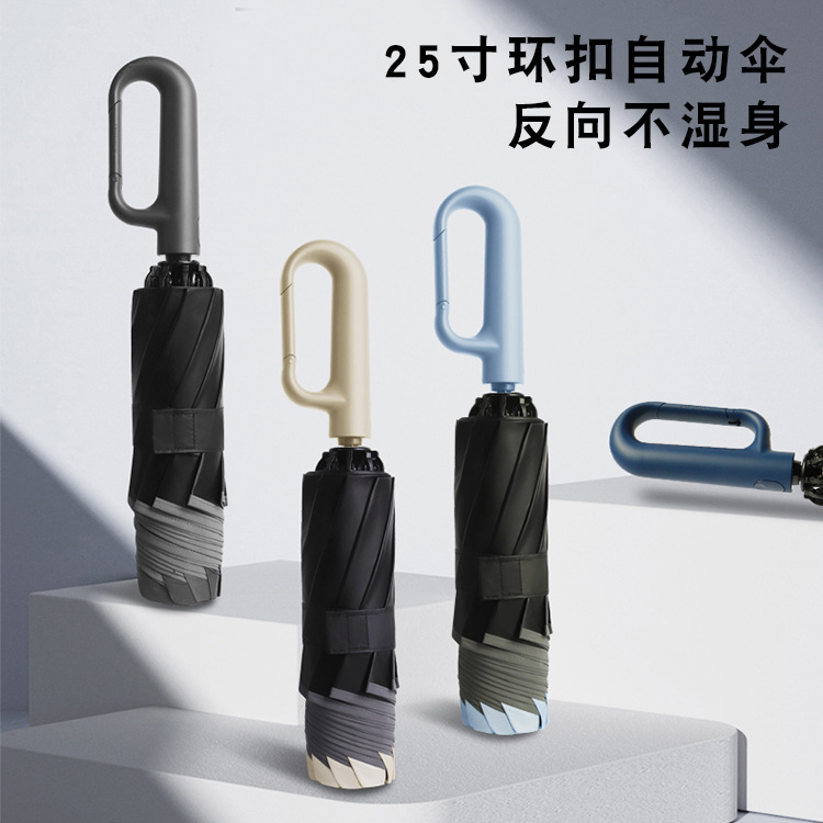 25インチ双龍骨逆環ボタン傘全自動大サイズ携帯補強男性晴雨両用広告定