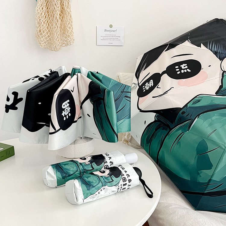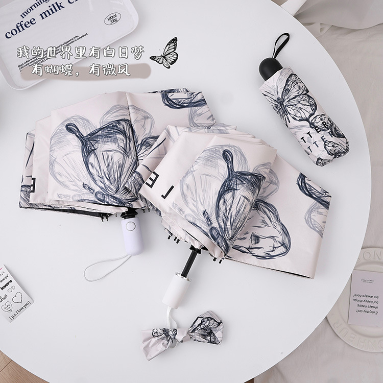 全自動日傘ins落書き風女日焼け止め紫外線晴雨両用小型携帯ミニ傘男