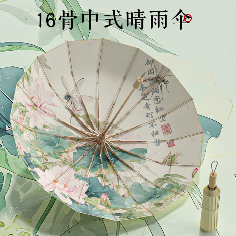 新中国式復古カラーゴム日焼け止め16骨日除け傘紫外線防止折り畳み晴れ傘メーカー現物卸売り