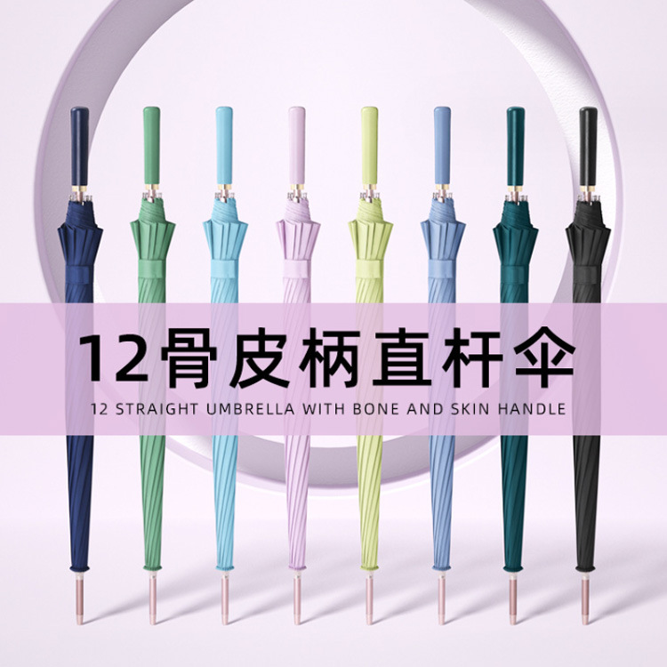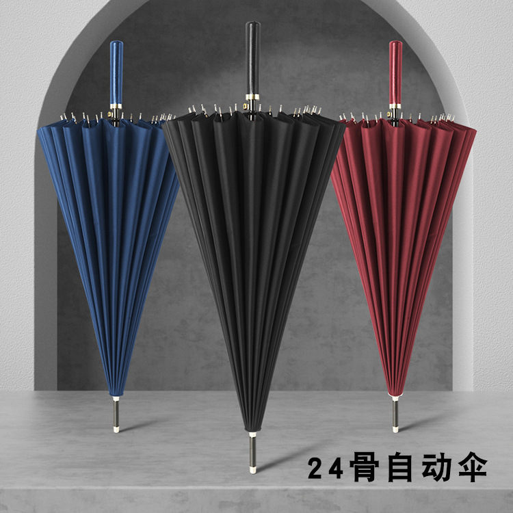 24骨自動皮柄ストレート傘ゴルフ傘抗風純色男女ビジネス傘定ロゴ傘