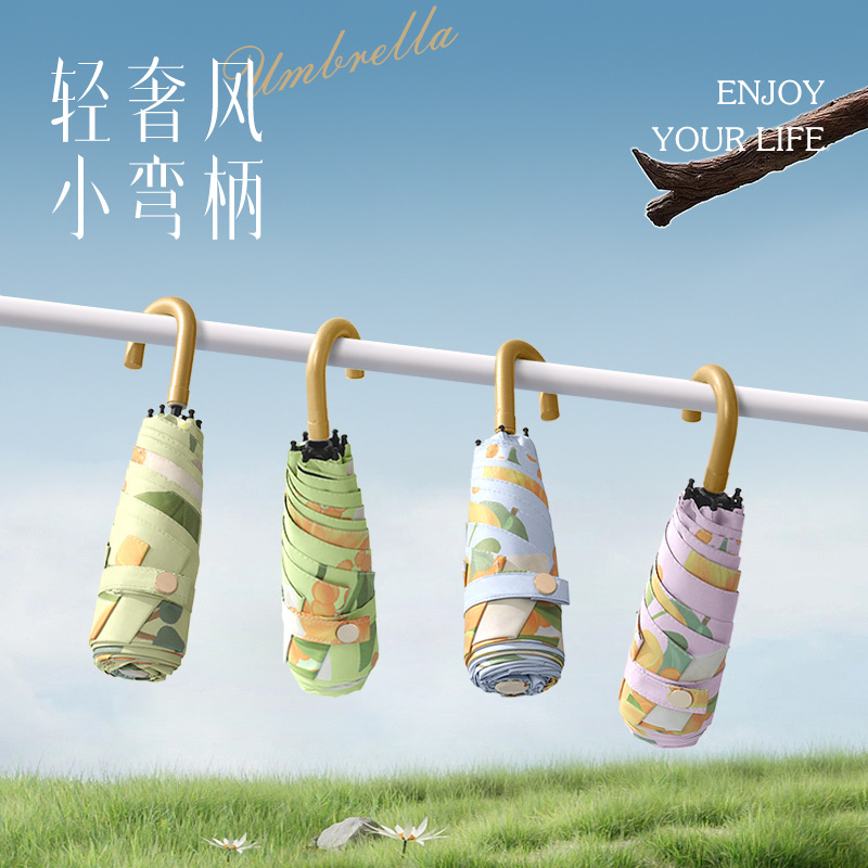 6骨の小さい金のフックのカラーのゴムの日焼け止めの森系の簡単な日焼け止めの日よけの傘の折り畳みの日傘のメーカーの現物の卸売り