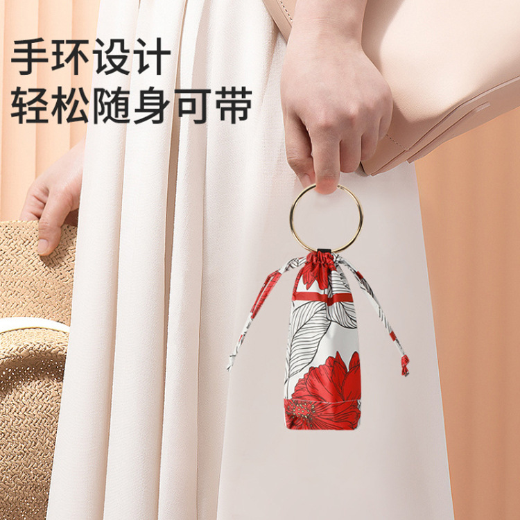 貴婦人バッグ傘デジタルプリント6骨チタン金日焼け止め女性折り畳み紫外線防止日除け傘卸売りスポット
