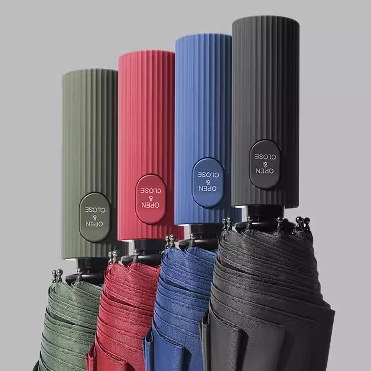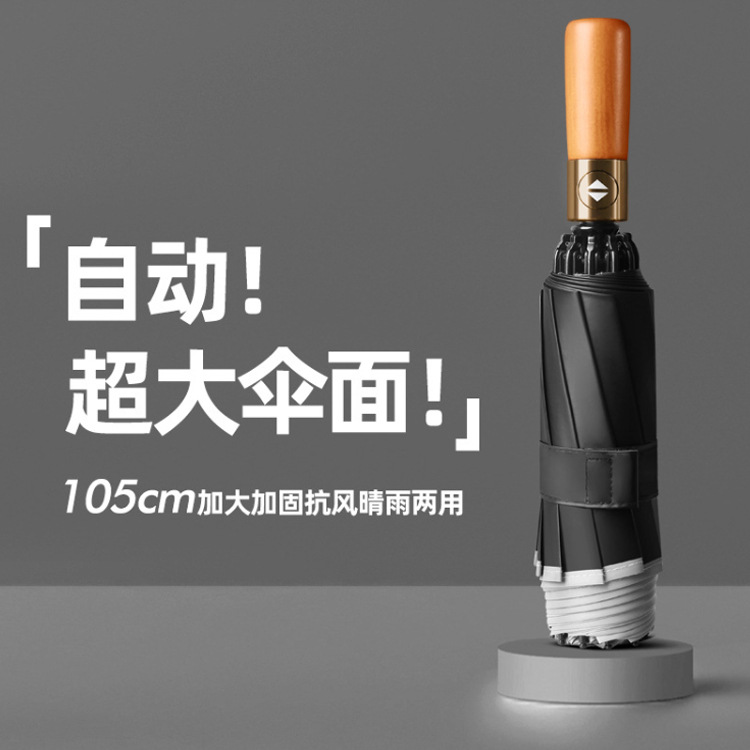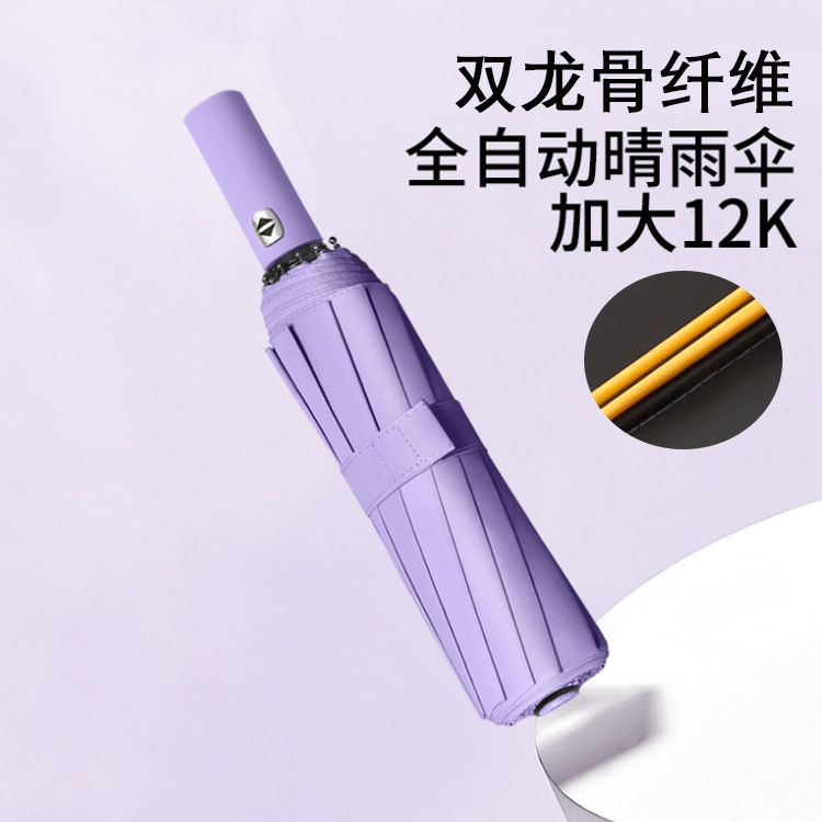 12骨双龍骨黒ゴム全自動折りたたみビジネス晴れ傘三つ折りパラソルはロゴ広告傘を追加印刷できます。