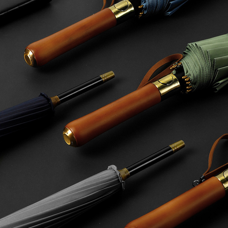 16本骨自動開閉式ゴルフ傘、レトロな木製長柄傘、直柄、頑丈で補強された傘、男性用ビジネス傘、晴雨兼用、日よけ