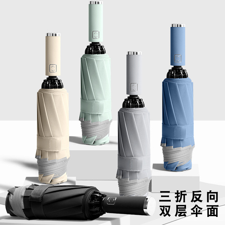 十骨二重傘全自動三つ折り逆傘折り畳み黒ゴム傘防晴雨両用傘耐風印logo