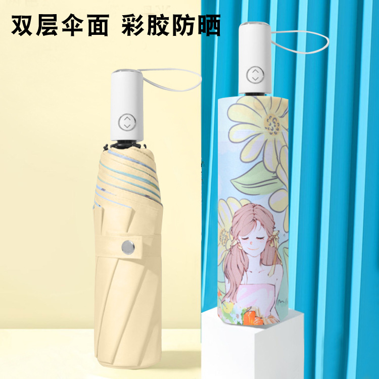 イラストシリーズ黒ゴム日焼け止め折り畳み晴雨傘紫外線防止日傘韓国女性個性創意小清新