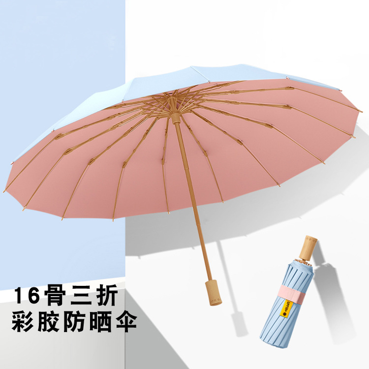 16骨三つ折り折り畳み傘小清新カラーゴム三つ折り日除け傘復古木柄手動ギフト傘現物メーカー