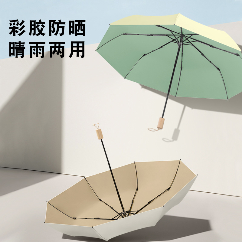 カラーゴム日焼け止め防風木ハンドルシンプル男女三つ折り傘小清新加印ロゴ傘広告傘