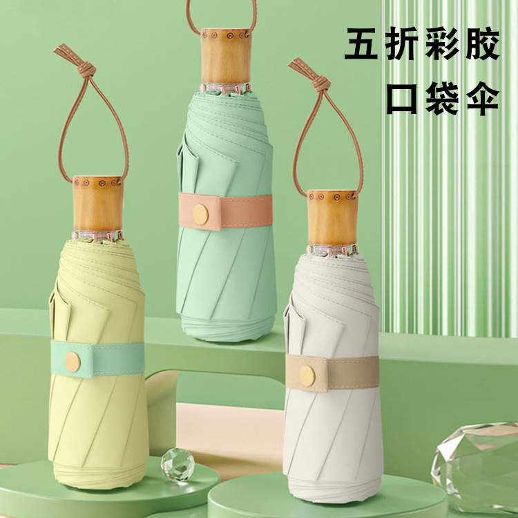 カラーゴム日焼け止め五折8骨レトロ実木ハンドルシンプル小清新加印ロゴ傘広告プレゼント傘