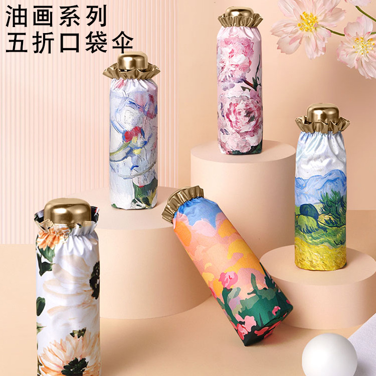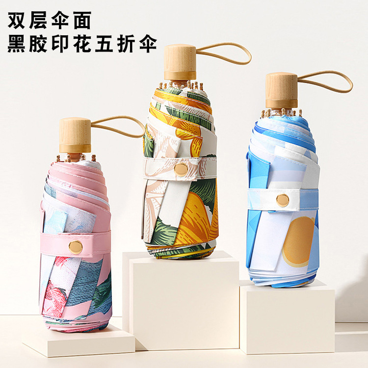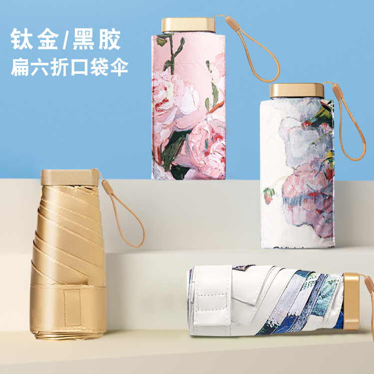 チタン金黒ゴム携帯五つ折り6骨日焼け止め晴雨両用日傘ビジネスプレゼント広告傘メーカー