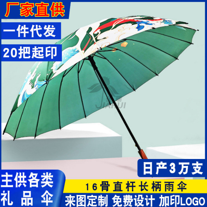 小清新16骨ストレート傘長柄傘シンプルファッション実木ハンドル広告傘定広告卸売り