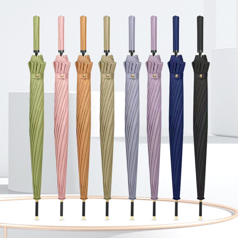 大きいサイズの16骨の小さい清新なまっすぐな竿の長い柄の傘の皮の取っ手のアイデアのシンプルな傘はロゴをプラスして贈り物を印刷することができます。