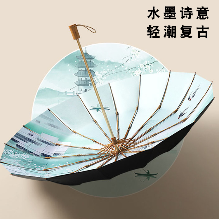 チタン銀日焼け止め三つ折り16骨傘男女折り畳み傘定ロゴレトロ小清新二人日除け傘