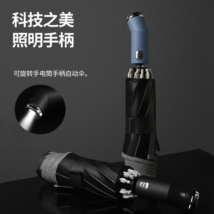 全自動機械傘10骨逆傘防風傘三つ折り男性ビジネス傘ロゴ広告傘