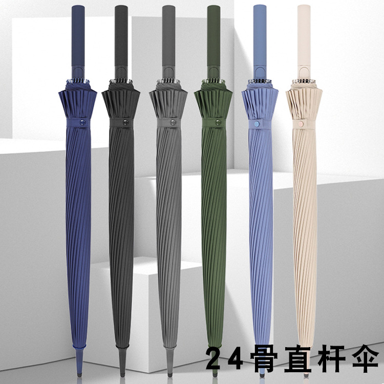 24本骨ビジネスファイバー自動長柄傘大型ビジネスストレートハンドル傘在庫卸売印刷ロゴメーカー在庫