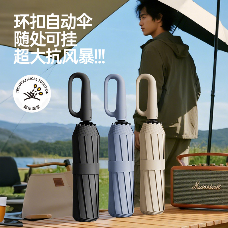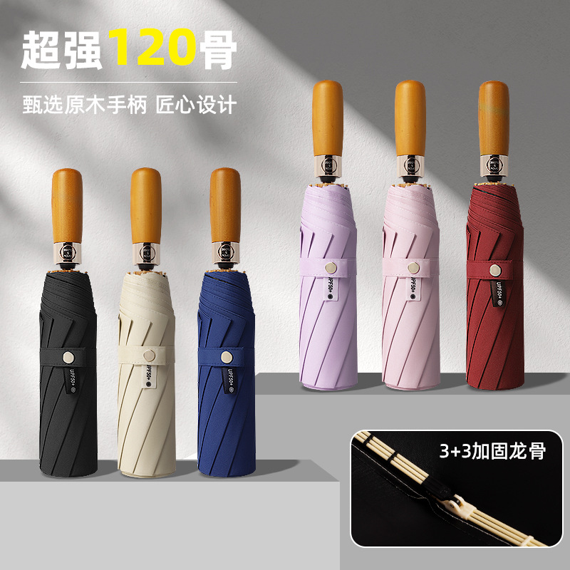 120骨三つ折り全自動木柄傘男性ビジネスサイズ折り畳み広告ギフト傘メーカースポット