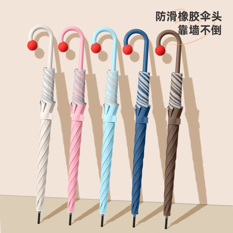 かわいい赤い鼻の滑り止めの少女の心の曲げフックのまっすぐな竿の傘の安全な丸い角はライトの条の傘のメーカーの現物の卸売りを放します。