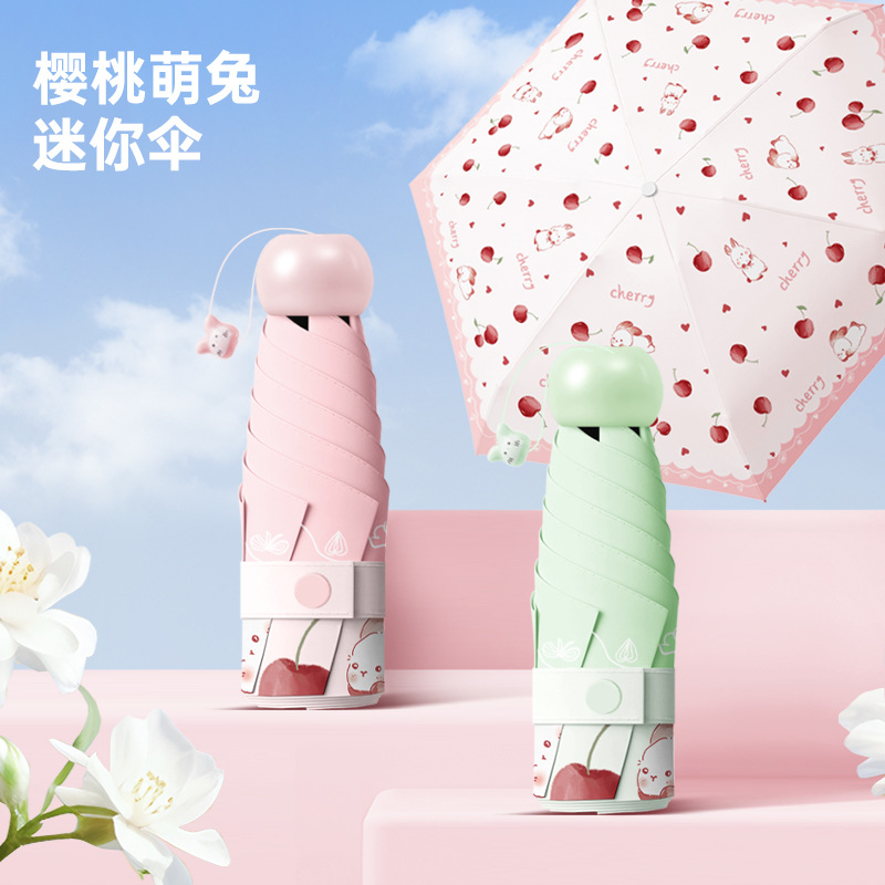 ミニ五つ折りかわいいさくらんぼ萌え兎黒ゴム日焼け止め晴れ雨両用傘女日傘印字メーカー現物