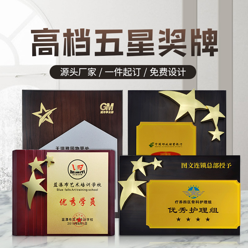 オーダーメイド五芒星感謝牌高級金箔代理授権牌表彰木造栄誉授賞記念品