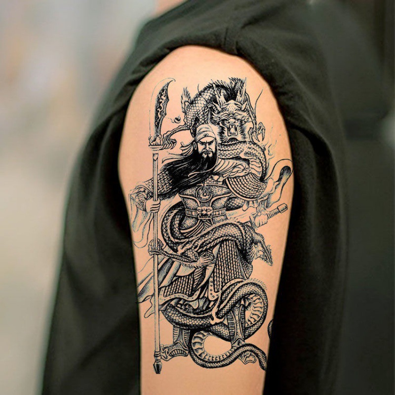 防水タトゥーステッカー長持ち男性関公二兄弟花腕タトゥーステッカー関公花腕タトゥーステッカー関公龍