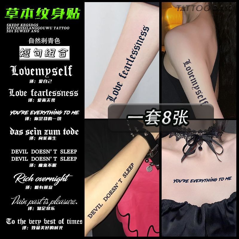タトゥーステッカー長持ち防水英語アルファベット小パターン心電図パーソナライズされたセクシーなダークガール大人のステッカー