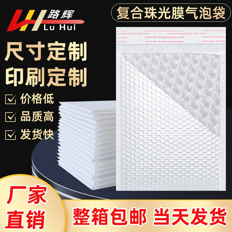 厚手の白いパール光沢フィルム気泡袋卸売防水梱包袋包装袋衣料品配送袋封筒フォーム袋