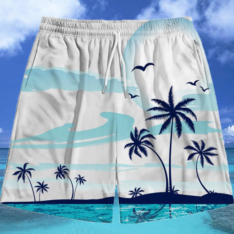 2023 夏ヨーロッパとアメリカのクロスボーダーメンズデジタル印刷 3D 印刷メンズユーストラベルハワイアンビーチパンツ