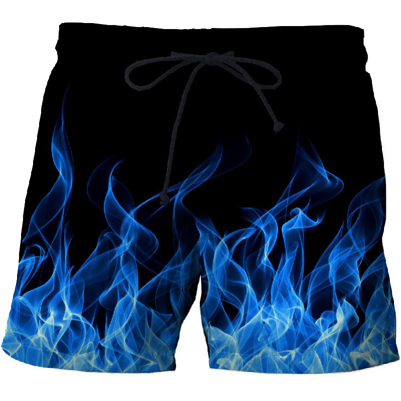 クロスボーダー新色炎 3D プリントメンズドライビーチショーツプリント両側ポケットカジュアルショーツなし