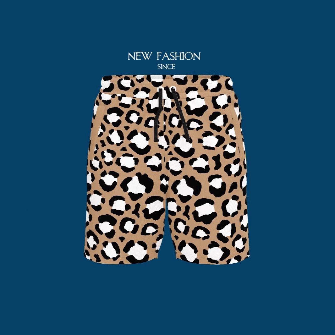 トレンディなカジュアル薄いアメリカンルーズショーツ男性と女性のための大きいサイズの夏のヒョウ柄の五分パンツハワイのトレンディなビーチパンツ