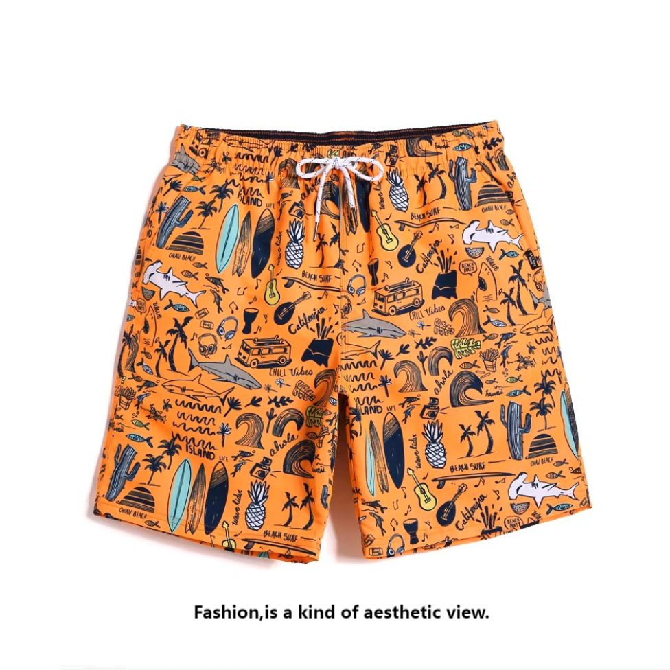 ビーチパンツメンズデジタルプリントルーズ温泉ショーツ大きいサイズメッシュ裏地ヨーロッパとアメリカのクロスボーダーリゾートパンツ