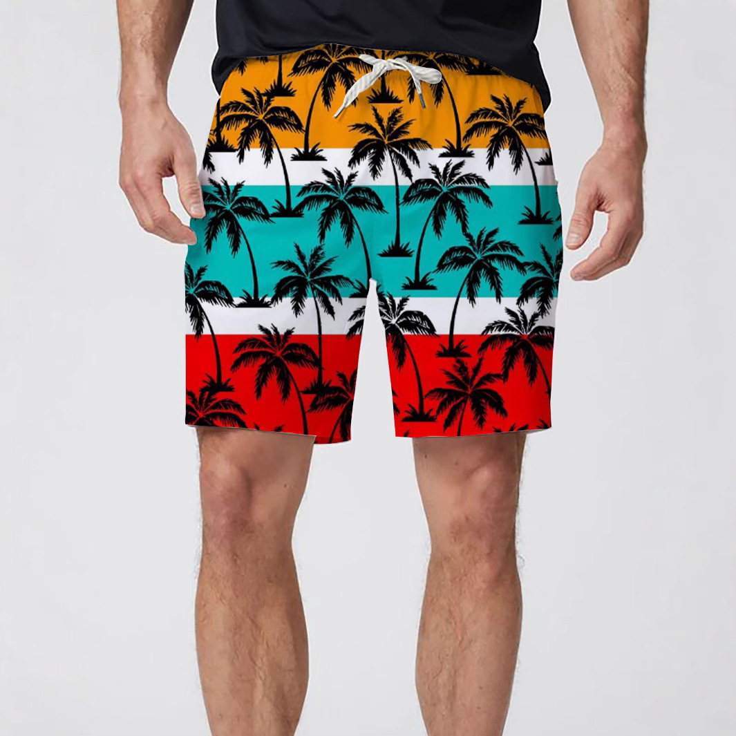 2025 クロスボーダーアマゾンビーチパンツカジュアル 3D デジタルプリントココナッツツリー 3 点ビーチパンツメンズショーツ