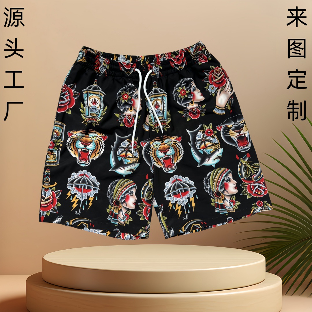 ヨーロッパとアメリカの貿易プリントスポーツ速乾ショーツカジュアルルーズ昇華ビーチパンツ5点パンツ