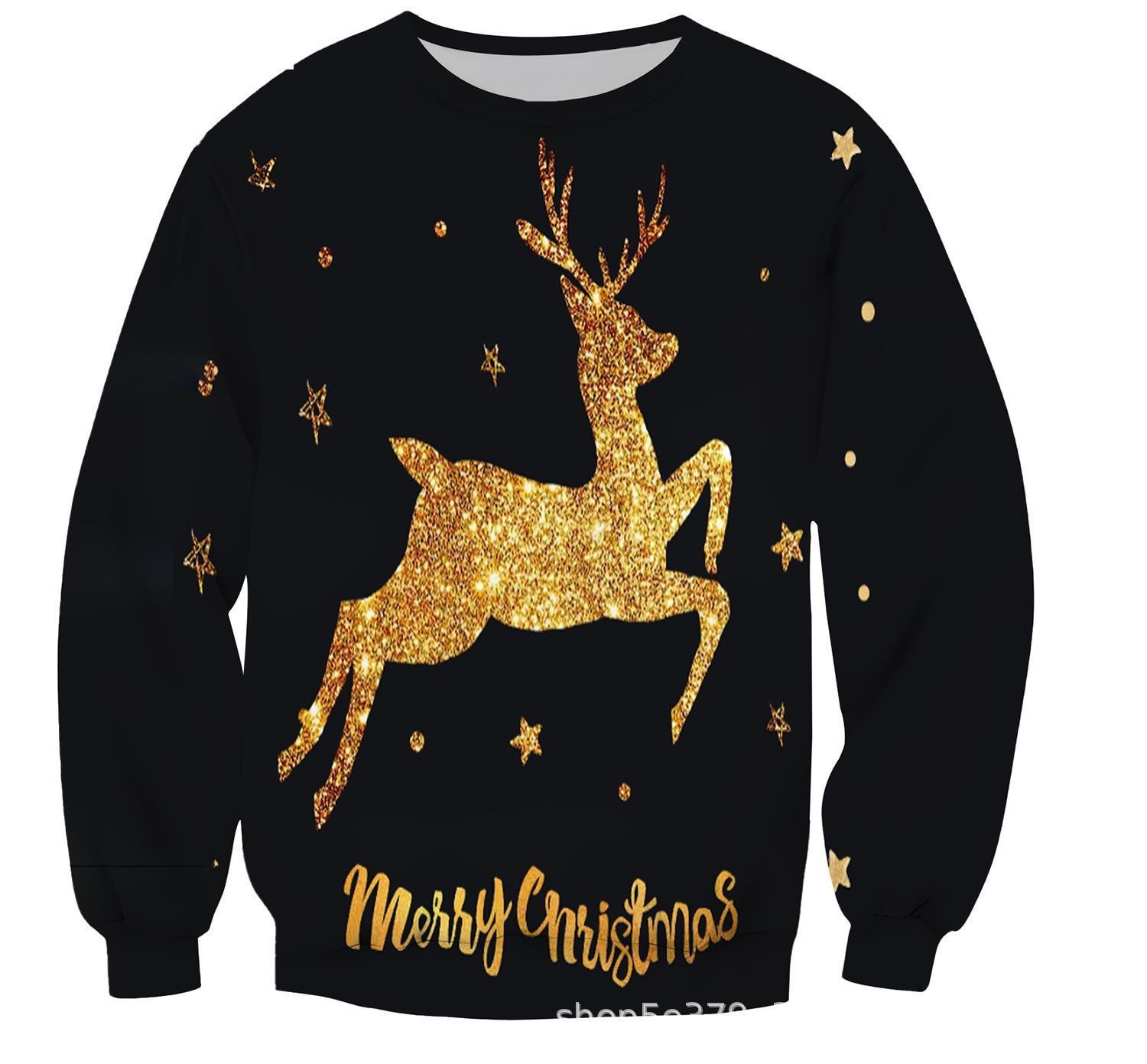 国境を越えた対外貿易男性丸首衛衣クリスマス要素3d数彩プリントカボチャヘラジカ雪花模様メーカー
