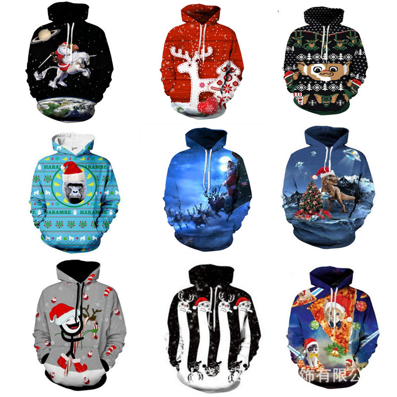 国境を越えたアマゾンの人気クリスマス3dプリントのゆるい男性フードカップル長袖フードコート